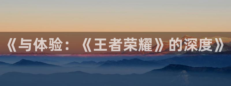 天美娱乐平台登陆:《与体验:《王者荣耀》的深度》